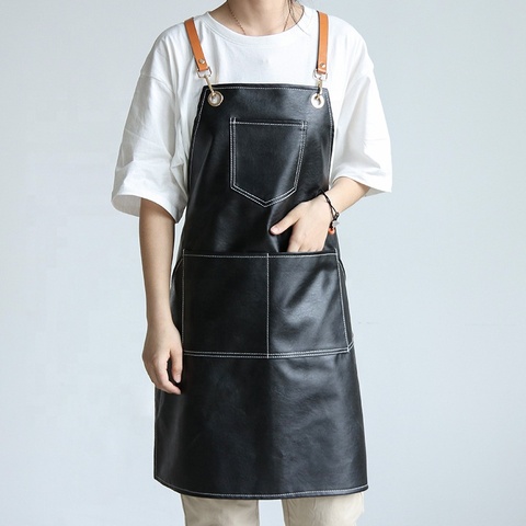 कम MOQ कस्टम लोगो नाई एप्रन घर कॉफी बार काम एप्रन पु चमड़े निविड़ अंधकार नाई एप्रन
